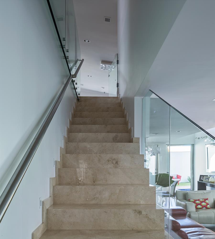 Com 516 m² de área construída, o projeto conta com bastante iluminação natural, graças ao pé direito-duplo e às grandes áreas envidraçadas, que permitem a entrada controlada da luz do sol.